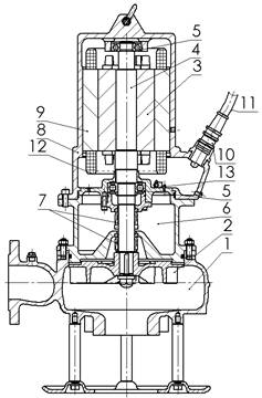 W pompie wirnik 2 wraz z wirnikiem silnika 3 ułożyskowany jest na wspólnym wale 4 przy pomocy dwóch zakrytych łożysk tocznych 5 wypełnionych smarem. Wał pompy uszczelniony jest od strony pompowanego medium oraz od strony komory olejowej 6 pojedynczymi czołowymi dociążonymi uszczelnieniami mechanicznymi 7 (od strony silnika stosowana jest para cierna węgiel/węglik krzemu natomiast od strony pompowanego medium parę cierną stanowią węglik krzemu/węglik krzemu).