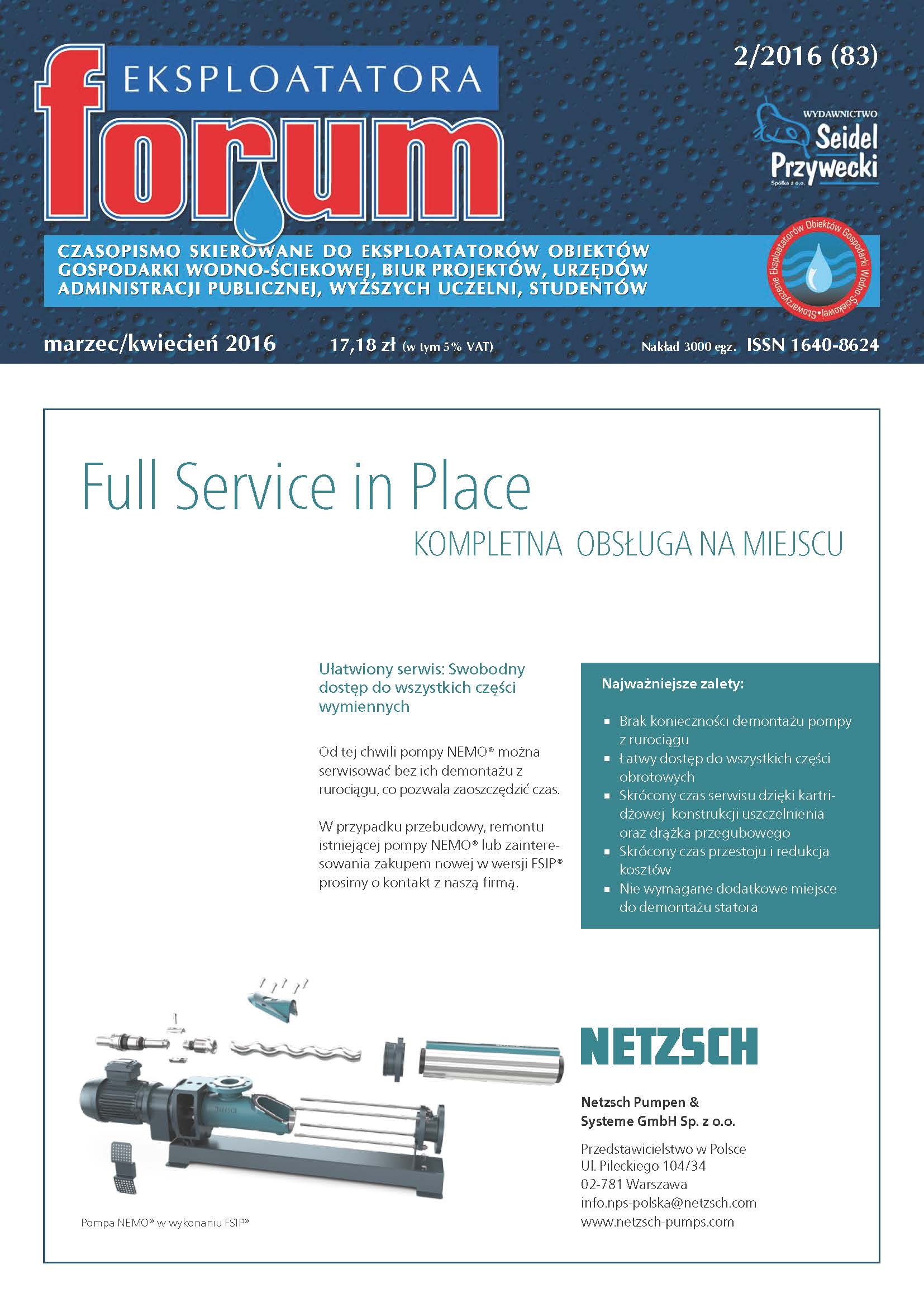 „Technologia wody” nr 3/2016 ![]() słowo wstępne i spis treści | „Forum Eksploatatora” nr 3/2016 ![]() słowo wstępne i spis treści |